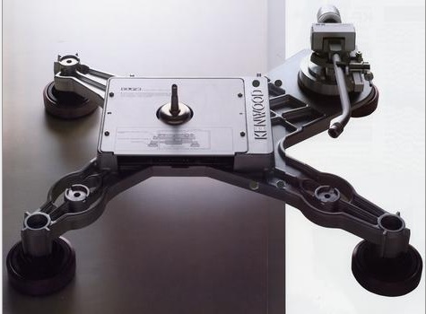 Hệ khung được gia công bằng 1 khung nhôm đúc nguyên khối hình chữ X. Mâm quay và tay cần được cố định trên khung nhôm này. nhằm triệt tiêu các rung động từ môi trường như sóng âm và các tác nhân khác làm ảnh hưởng tới mâm quay và tay cần.